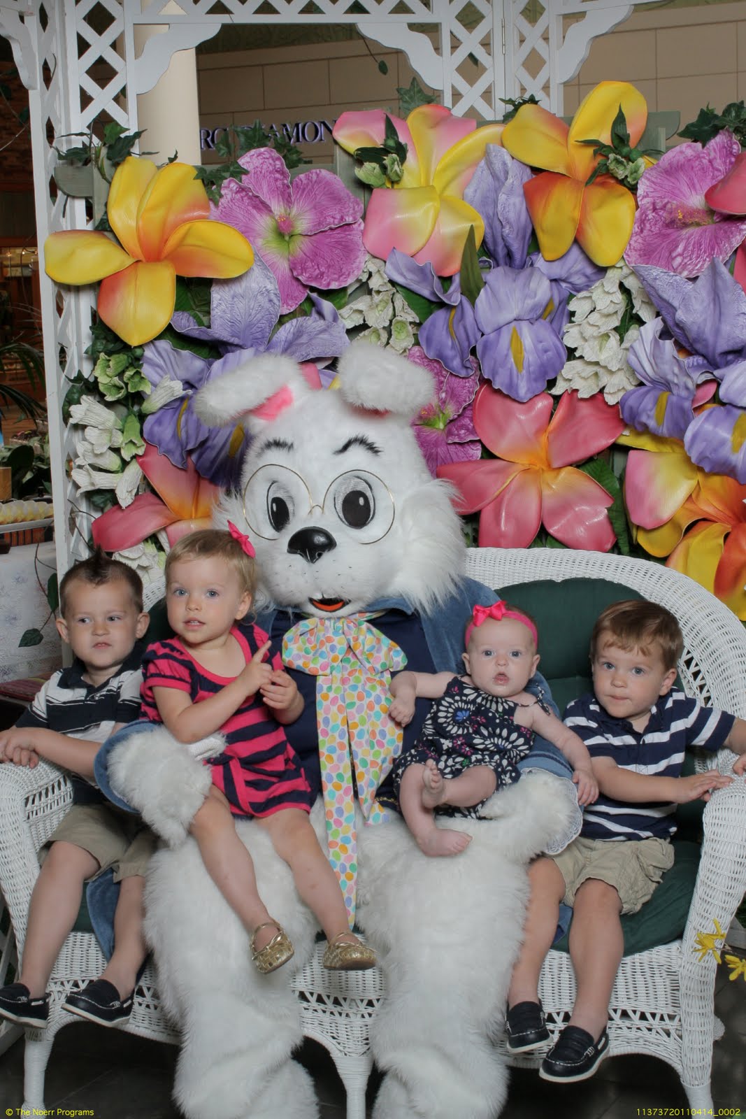 Such a busy weekend!!! We might have overdone it since Elliott and I ended up back at the doctor today and she was diagnosed with a lower respiratory infection...poor girl can't catch a break, but boy did she live it up this Easter. In closing, I leave you with the kiddos picture with the Easter Bunny we took a while ago. Unlike Santa, Elliott LOVED the Easter Bunny and kept poking him in the face saying "bunny hop hop".